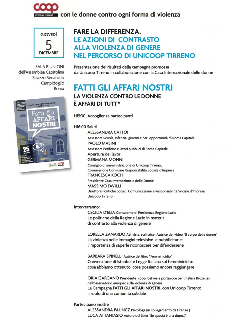 All’interno della presentazione delle AZIONI DI CONTRASTO ALLA VIOLENZA DI GENERE NEL PERCORSO DI UNICOOP TIRRENO, intervento di Lorella Zanardo su: La violenza nelle immagini televisive e pubblicitarie: